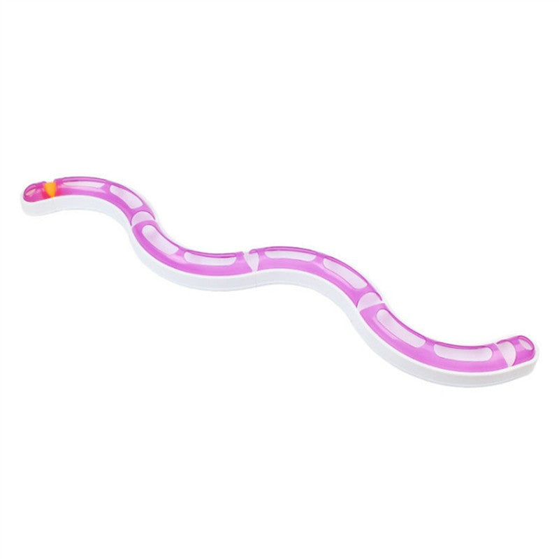 there are large openings along the circuit that allow curious felines to safely reach and touch the ball